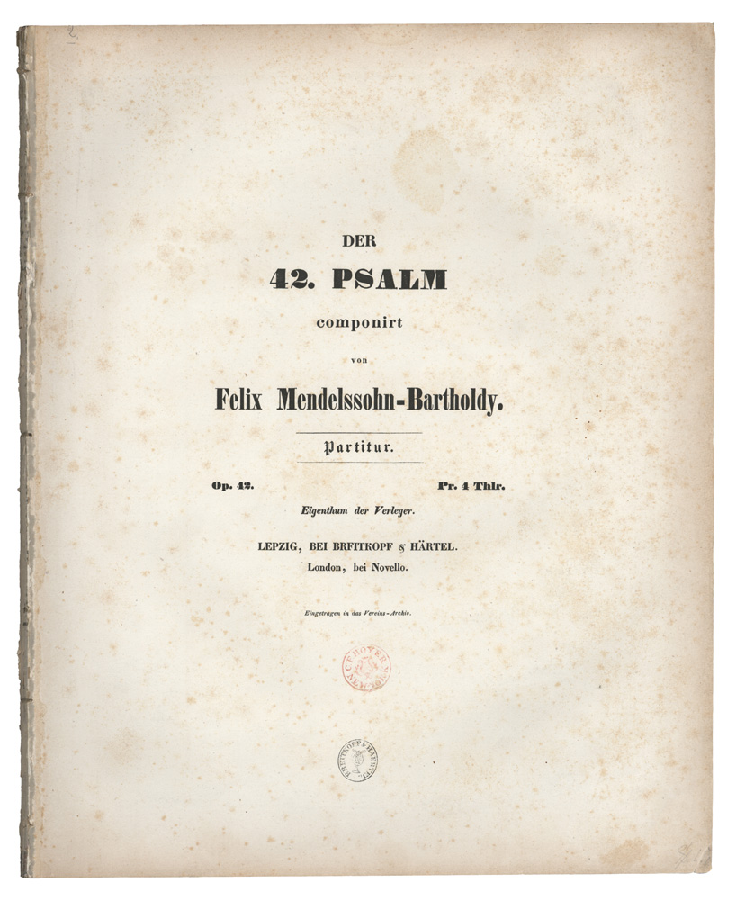 Der / 42. PSALM / componirt / von / Felix Mendelssohn-Bartholdy. / Partitur. / Op. 42.