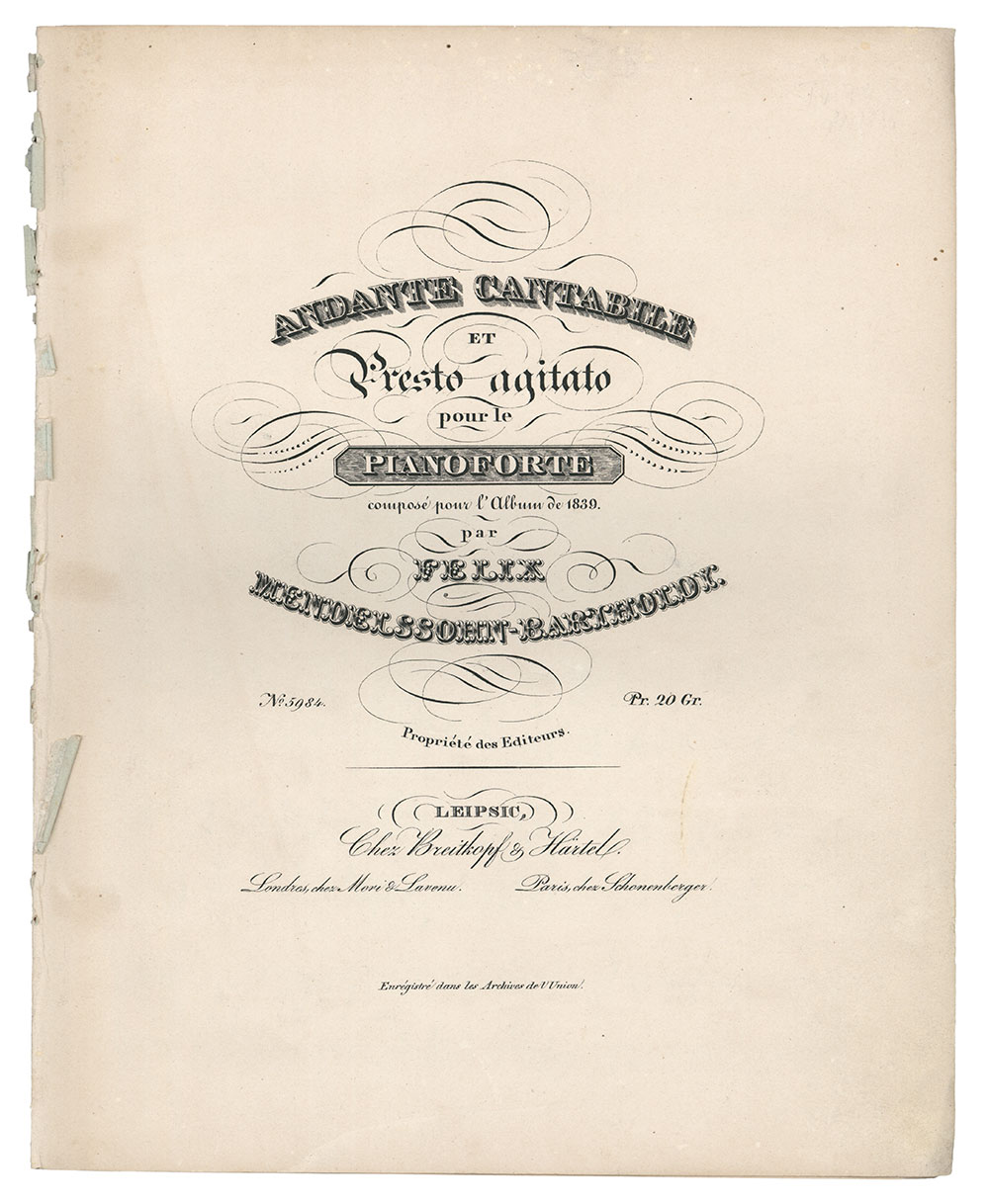 ANDANTE CANTABILE / ET / Presto agitato / pour le / PIANOFORTE / composé pour l'Album de 1839. / par / FELIX / MENDELSSOHN-BARTHOLDY.
