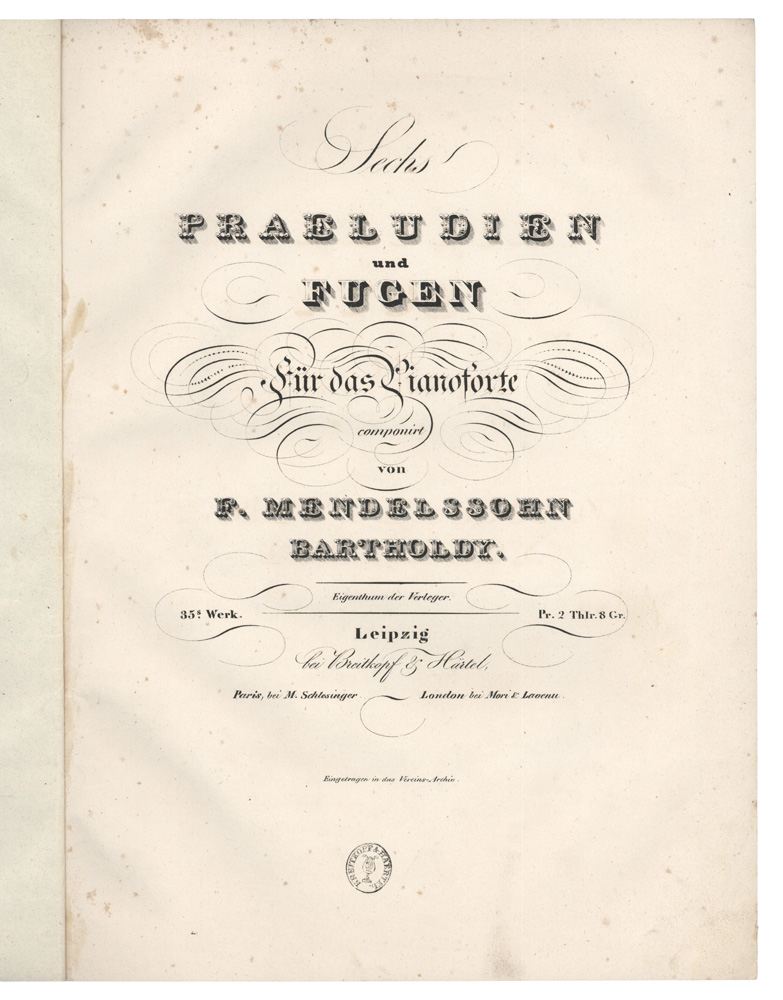 Sechs / PRAELUDIEN / UND / FUGEN / Für das Pianoforte / componirt / von / F. MENDELSSOHN / BARTHOLDY. / 35s. Werk.